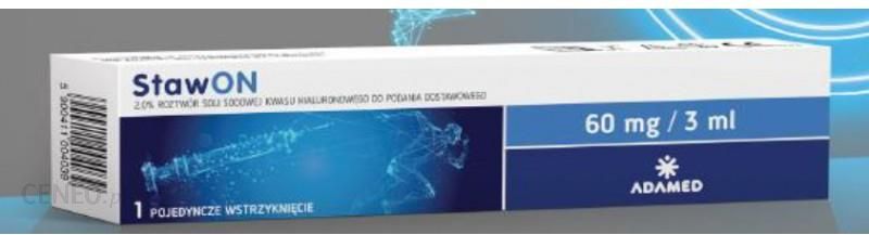 STAWON 60mg/3ml to wyrób medyczny zawierający 2% roztwór soli sodowej kwasu hialuronowego do wstrzykiwań dostawowych, który wskazany jest w leczeniu bólu towarzyszącego chorobie zwyrodnieniowej stawów. Preparat uzupełnia maź stawową, która niezbędna jest dla prawidłowego funkcjonowania stawu jednocześnie wspomagając jego funkcjonowanie.Produkt w opakowaniu jednodawkowym – jedna iniekcja.