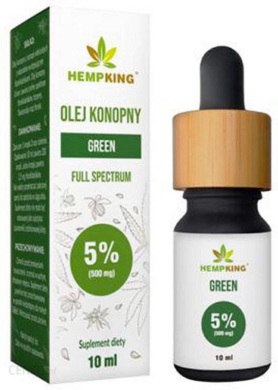 Olej CBG 5% GREEN 10ml HEMP KING500mg CBG Full SpectrumSuplement DietySkładnikiOlej z konopi siewnych (Cannabis sativa L.) o pełnym spektrum fitoskładnikóworaz olej z nasion konopi siewnych, terpeny, flawonoidy, fenole.Butelka jest wykonana z zaciemnionego szkła, a nakrętka z bambusu,by ograniczyć ilość wykorzystywanego plastiku.Zalety Oleju CBG 5% Green Full Spectrum 10ml:-Aż 500 mg CBG (kannabigerolu)-Pełne spektrum kannabinoidów (fitoskładników),w tym: CBD, CBDA, CBDV, CBG, CBC, CBN, CBGA.-Naturalnie występujące w konopiach terpeny, flawonoidy, fenole orazKwasy tłuszczowe: omega-3, omega-6 oraz omega-9.-1 kropla – 2,5 mg CBG.-Produkt poddawany stałej kontroli jakości.-Produkowane bez użycia rozpuszczalników, wzbogacenia syntetycznego lub krystalicznego CBD.-100% naturalny.-Butelka to 200 kropli.-Wystarcza na ok. 2 miesiące stosowania.Opis Wyjątkowy olejek konopny z CBG 5% to suplement diety,który w łagodny sposób wspomoże Twoją dietę!CBG, czyli kannabigerol, to jedna z substancji aktywnych,występujących w konopiach siewnych. Bez niego nie byłoby CBD!Produkt polskiWybierając produkty od Hemp King, wspierasz polską gospodarkę oraz polskich rolników.Konopie, z których wytwarzane są produkty konopne rosną na polach znajdujących sięw najczystszych zakątkach Polski.Właściwości oleju CBG Green 5%:Dzięki wysokiemu stężeniu CBG i innych fitoskładników orazpozostałych związków pochodzących z konopi, olej CBG wykazuje pozytywne właściwości.Suplementując olej konopny:- wzbogacisz dietę o fitoskładniki,- dostarczysz bogactwo nienasyconych kwasów tłuszczowych omega-3, omega-6 i omega-9,- wspomożesz swoją naturalną odporność,- korzystnie wpłyniesz na układ sercowo-naczyniowy,- olej pomaga regulować zawartość cholesterolu i trójglicerydów we krwi,- zapewnisz skórze optymalny poziom nawilżenia i zdrowy wygląd.Jak spożywać olej konopny CBG Green 5%?Wdrożenie suplementacji olejku CBG jest niezwykle proste,pod warunkiem, że znasz kilka podstaw.Gdy dopiero zaczynasz suplementację, spróbuj od porcji 1 kropli trzy razy dziennie.Staraj się nie jeść pół godziny przed i pół godziny po spożyciu suplementu konopnego.Wystarczy umieścić jedną kroplę olejku pod językiem, zaczekać 30 sekund, a następnie połknąć.Staraj się nie pić od razu po przełknięciu!UwagiJeśli przyjmujesz leki, to przed włączeniem do diety olejków CBG,koniecznie skonsultuj się z lekarzem!Suplement diety nie służy do zastąpienia zbilansowanej diety.Zwróć uwagę, by nie przekroczyć dziennej zalecanej porcji suplementu.Informacje o alergenachNie stosować u osób uczulonych na jakikolwiek składnik preparatu.PrzechowywanieChronić przed światłem.Przechowywać w sposób niedostępny dla dzieci.Informacje dodatkoweUWAGA – zdjęcie / wizualizacja produktu może odbiegać od aktualnego wyglądu.