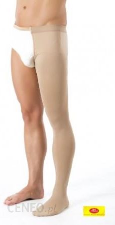 PANI TERESA® CLASSIC Pończocha uciskowa na pasku prawa lub lewa 2 klasa kompresji PT0414 (23 – 32 mmHg) WSKAZANIA: * żylaki z towarzyszącymi obrzękami * zakrzepy żył powierzchniowych i głębokich * po przebytym zakrzepowym zapaleniu żył (przy obrzękach i bólach) * przed – i pooperacyjna profilaktyka zakrzepowego zapalenia żył * obrzęki po stłuczeniach, złamaniach i zwichnięciach * obrzęki chłonne * noga obrzęknięta, bolesna, „ciężka” *po zagojeniu się niewielkich owrzodzeń żylakowych * słoniowacizna nóg i goleni * obrzęki nóg i powiększające się żylaki u kobiet ciężarnych PRZECIWWSKAZANIA: * miażdżyca tętnic kończyn dolnych, choroba Beurgera, tzw. „stopa cukrzycowa” Tabela rozmiarów Oznaczenie miejsca pomiaru Pomiar ( cm ) XS S M L XL XXL XXXL g Obwód górnej części uda 43-51 50-53 53-58 57-63 62-69 63-72 64-78 f Obwód na środku uda 39-46 44-49 49-54 53-56 56-65 64-70 67-75 d Obwód pod kolanem 28-31 30-33 32-36 35-38 37-41 39-44 43-47 c Obwód łydki w największym obwodzie 29-32 31-34 33-37 36-39 38-43 40-45 44-49 b Obwód kostki mierzony w punkcie najmniejszego obwodu 18-20 20-21 21-23 23-25 25-27 27-30 30-32 Wysokość A – G do 70 cm – krótkie od 71 cm – długie Pończochy produkowane są w wersji z czubkiem zamkniętym oraz otwartym (wolne palce). Instrukcja używania. Dopasowanie rozmiaru: W celu prawidłowego dobrania rozmiaru zmierzyć obwody nogi w podanych punktach określonych w tabeli rozmiarów, a następnie zmierzyć wysokość A – G i wybrać długość produktu. Sposób nakładania: Nakładać od palców do kostki, rozprowadzić równomiernie na stopie. Zwrócić uwagę na dokładne umieszczenie pięty. Nałożyć do kolana, dokładnie rozprowadzić na łydce zmniejszając nieco naprężenie wynikające z nakładania. Wygładzić wszystkie zgrubienia i zmarszczenia. Nałożyć do pełnej długości. Zapiać wyrób na gumkę w pasie. Usunąć wszystkie zmarszczenia, wygładzić. Uwagi: Medyczne wyroby uciskowe nakłada się inaczej niż zwykłe pończochy. Nakładanie medycznych pończoch zaleca się rano, przed wstaniem w pozycji leżącej. Dobór rozmiaru i stosowanie wyrobu skonsultować z lekarzem. W razie wystąpienia ostrego bólu lub podrażnienia skóry podczas noszenia wyrobu, wyrób natychmiast zdjąć i skonsultować się z lekarzem. Przy używaniu wyrobów o 2 klasie kompresjinależy uważać, aby nie uszkodzić wyrobu ostrymi przedmiotami: pierścionkiem, zegarkiem, paznokciami. Nieprawidłowa pielęgnacja pięt oraz noszenie niewłaściwego obuwia (np. wkładki w obuwiu zwiększające tarcie) może przyczynić się do powstawania przetarć i uszkodzenia produktu. Przepis prania: Prać wodzie o temp. 40°C, prać w delikatnych środkach piorących, nie prasować, nie chlorować, nie wybielać, nie czyścić chemicznie, suszyć w stanie rozłożonym, z dala od źródeł ciepła. Przechowywanie: Przechowywać w temperaturze pokojowej, w suchym i zacienionym miejscu. Dostępne kolory: jasny beż, beż, ciemny beż, granat, grafit, czarny. SKŁAD SUROWCOWY: Poliamid 79% elastan 21%